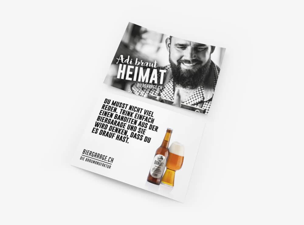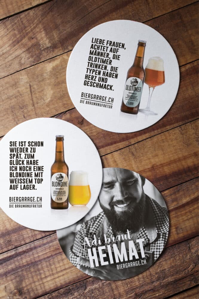 Für die Biergarage, eine kleine, aufstrebende Craft-Bierbrauerei, steht die Individualität im Mittelpunkt ihrer Philosophie. In einer Welt voller Massenprodukte und uniformer Geschmäcker haben wir es uns als Werbeagentur zur Aufgabe gemacht, die besondere Note dieser Brauerei gekonnt hervorzuheben. Und das mit bescheidenem Start-up-Budget, aber grossem Einfallsreichtum.