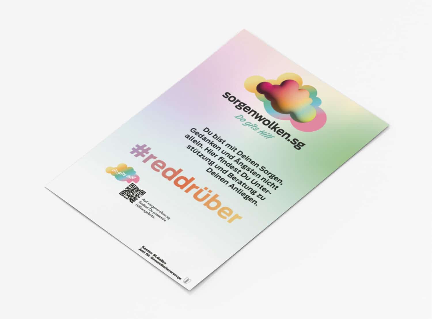Damit die neue «Sorgenwolken»-Kampagne zur Sensibilisierung von Kindern und Jugendlichen bei den Zielgruppen einfach verständlich ankommt, haben wir das Branding der Kampagne von Anfang an entwickelt und dabei die Ansprache bewusst auf einem niederschwelligen Level gewählt. Neben der Entwicklung von Logo und Claim übernahmen wir im Auftrag von Zepra auch die Konzipierung und Umsetzung der «Sorgenwolken»-Landingpage sowie die zusätzliche Kommunikation via Postkarte und Werbeartikel.